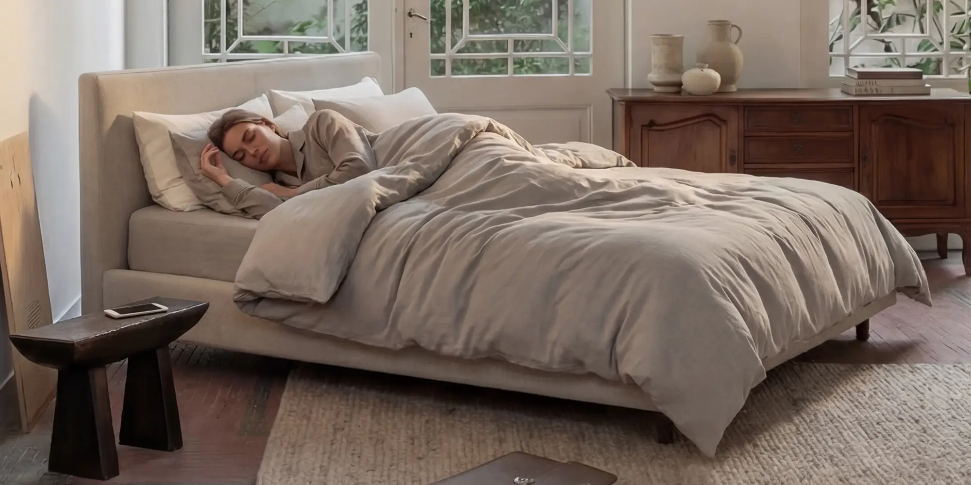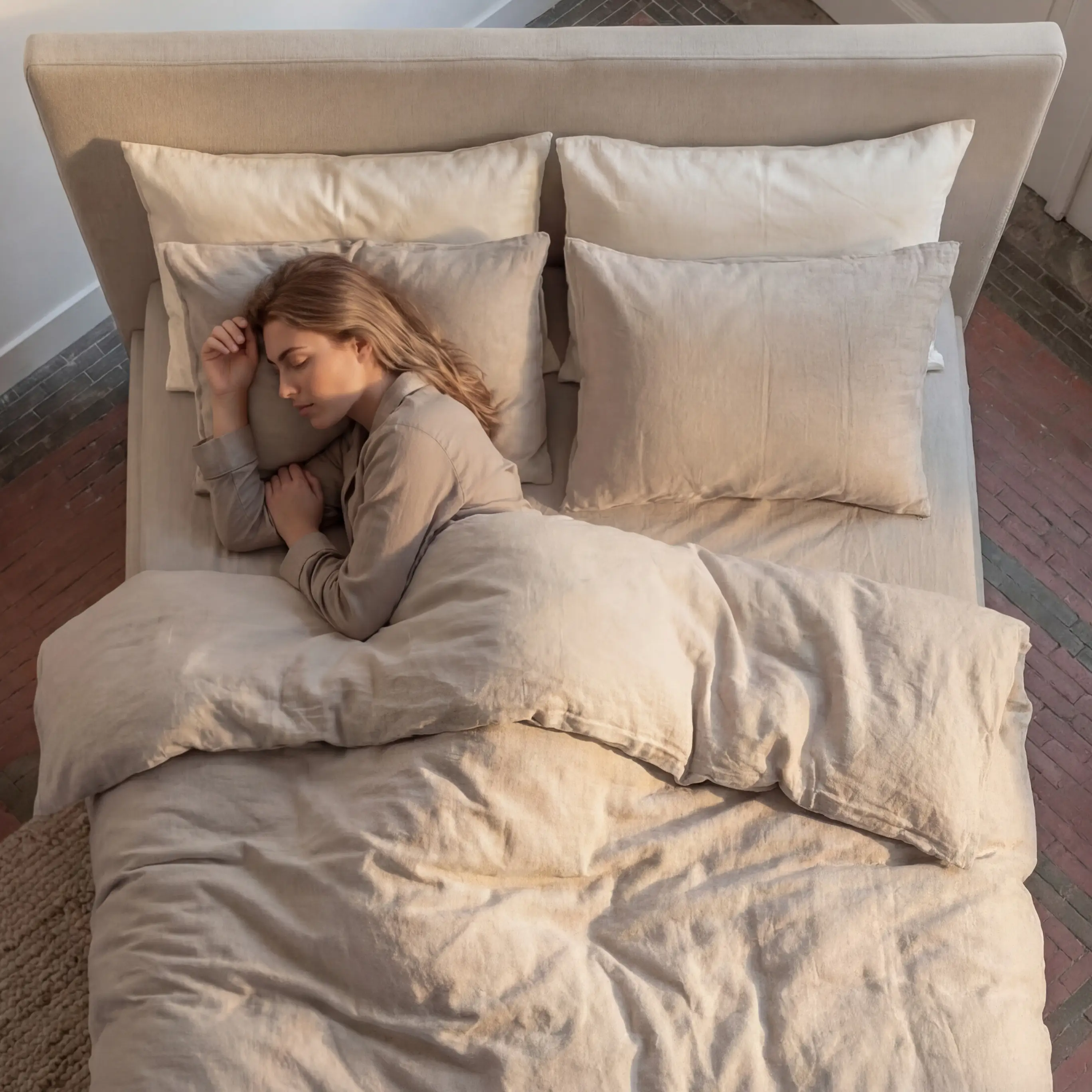 Na een volle dag wil je niet “nog iets”. Je wilt minder. Minder input, minder gedoe, minder trekken en schuiven. Het bed wordt een grens: deur dicht, licht zachter, telefoon weg, adem omlaag.